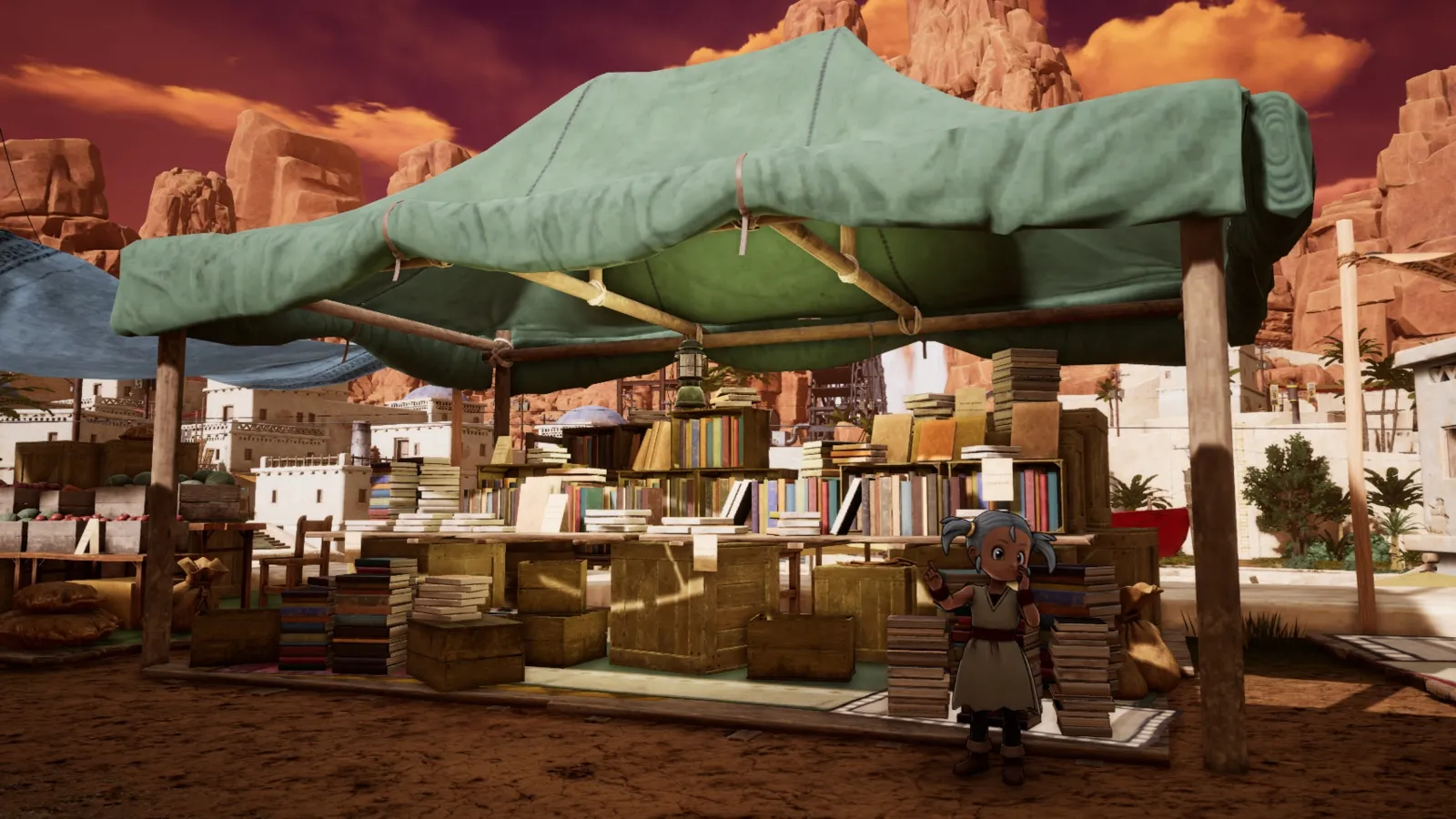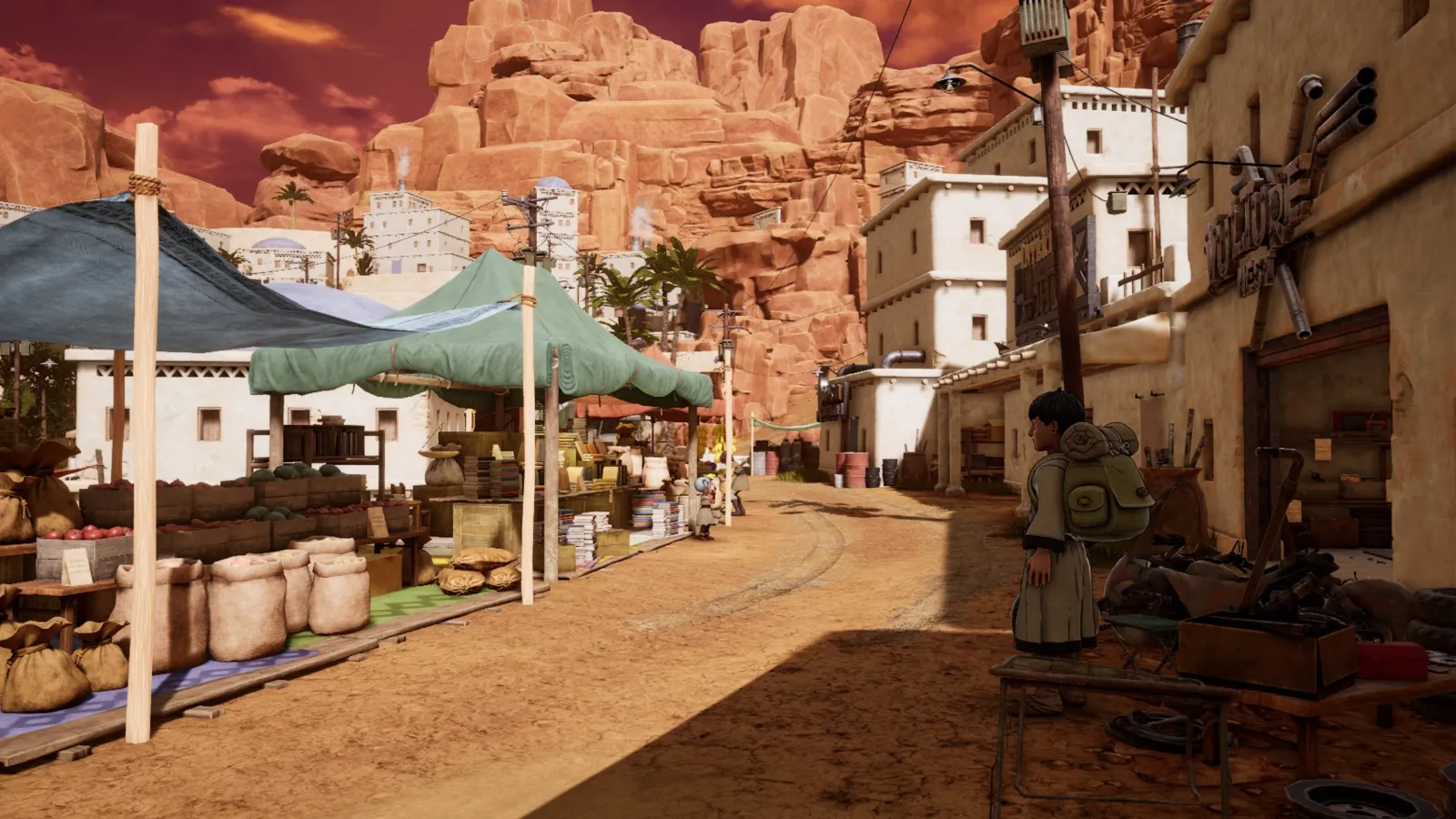 Once my demo concludes, Bandai Namco treats me to an exclusive breakdown of Sand Land’s town-building element. At a certain point in the story, players encounter a small, ruined settlement out in the desert that they are tasked with restoring.
