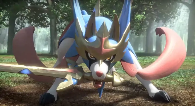 At the end of the Direct, Nintendo revealed the two legendary Pokémon for this paired entry: Zacian and Zamazenta. Both are wolf-like Pokémon. Zamazenta has a shield covering his face. However, Zacian is probably the most interesting of the two immediately:
