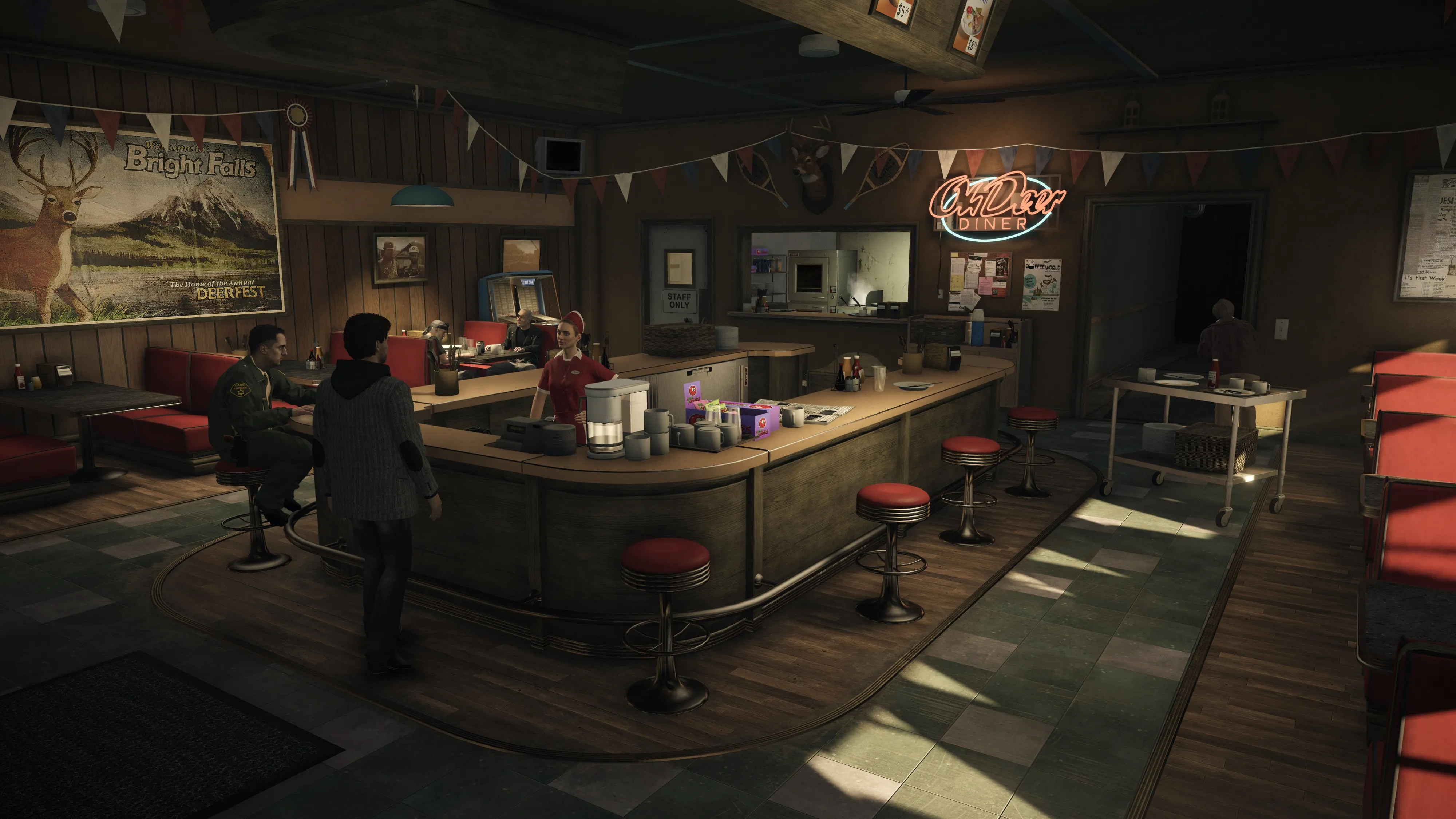 This Remedy Entertainment production looked great back in the day, and it still looks good today, but the remaster efforts aren't enough to fully hide the game's Xbox 360 roots. The world and character models are subtly touched up to deliver smaller details and a little more realism. The crisp 4K resolution makes the dimly lit woods more terrifying and shines a spotlight on some of the aged qualities, like facial animations that don't always line up with a character's emotion or Alan's movements, which are a little too mechanical and exaggerated. The game looks antiquated, but not in a bad way. It has an eerie (yet believable) quality that matches the story's dark tone.