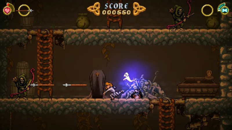 Battle Princess Madelyn unleashes the titular royal on a side-scrolling world filled with creeping undead, giant snakes, and demonic trees. Her family has been kidnapped by a malevolent force, and she flings an endless supply of spears and swords to overcome the threat. Through charming (if simply drawn) characters and cameos, the story takes on a personal vibe, and showcases a plucky, capable heroine with spark and panache.