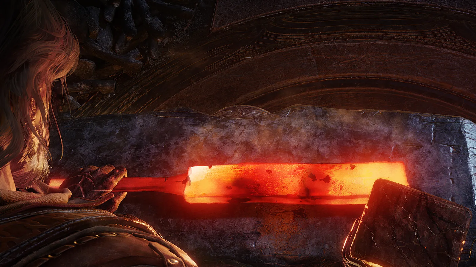 Aran makes his weapons, which involves collecting materials and playing a smithing minigame. If you are enamored with a particular blade and successfully built it once before, you can thankfully skip the minigame. I quickly found the process of creating or rebuilding weapons annoying, especially early on, when I would go through myriad weapons when stuck on bosses. Since the only incentive to kill enemies is more materials to make more gear, and engaging enemies only brings your weapons closer to destruction, I often ran from objective to objective without fighting in order to save my favorite swords.