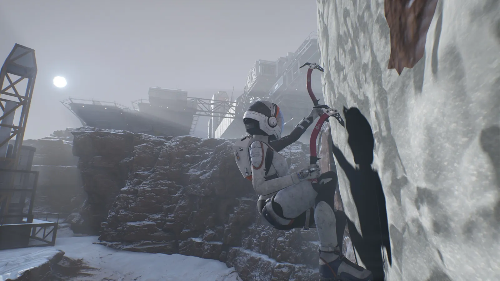 Platforming plays a more significant role now that Kathy can scale particular walls using climbing axes. This mechanic leans on the realism side, with players using the left and right triggers to aim and strike with each arm. Like other mechanics, this action is just good enough to work, but climbing becomes tiresome in longer segments and unresponsive in some instances. Jumping from one climbing patch to another feels especially rough, and I fell to my death several times when my strikes didn’t register. The game sporadically throws in some hazards, such as spinning blades or collapsing wall panels, but the climbing isn’t tuned enough to handle them confidently.