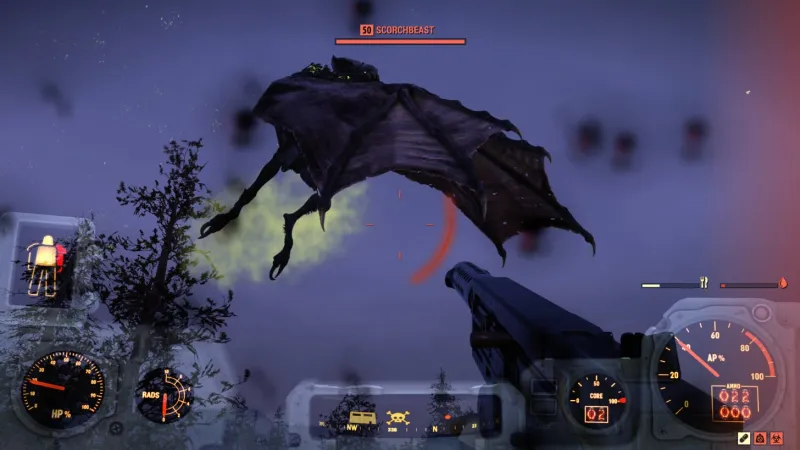 Fallout 76 isn’t designed to be the next installment in the core Fallout series, but Bethesda wants it to feel like a direct extension of it. Combat, menu management, exploration, and all of the gameplay loops are just like Fallout 4’s, which is a good thing. These systems still hold up and deliver a great degree of fun. Yes, there’s a little bit of clunk and rust to combat, but it is reliable to a degree. Even VATS, which no longer freezes time, can be used to effectively pick off difficult foes. The problems that arise are often glitches, like enemies popping into existence, or the framerate chugging and letting a foe get on top of you.