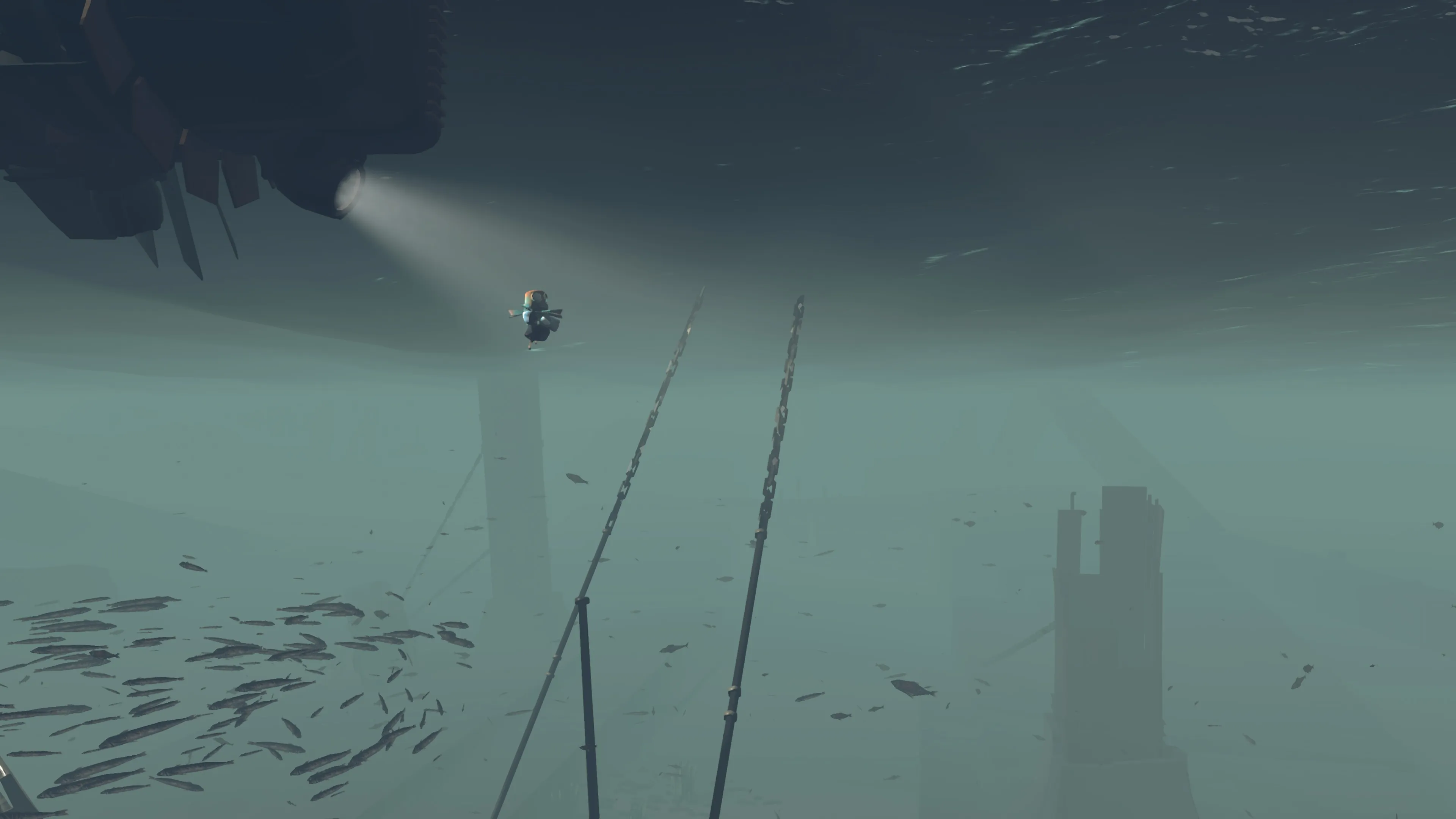 You encounter various roadblocks during this journey and are often forced to abandon your ship to solve environmental puzzles. These moments are rarely taxing, but I enjoyed stretching my legs to power up a rusted windmill, study the inner workings of a rotted locomotive, or dive for secrets on the ocean floor. Much like Lone Sails, Changing Tides doesn’t bother you with tooltips or gameplay explainers; instead, you learn about this world and how everything works through trial and error. Occasionally, I scratched my head at what looked like a dead-end, but after tinkering with the environment for a few minutes, I was always able to find what felt like a well-earned solution.