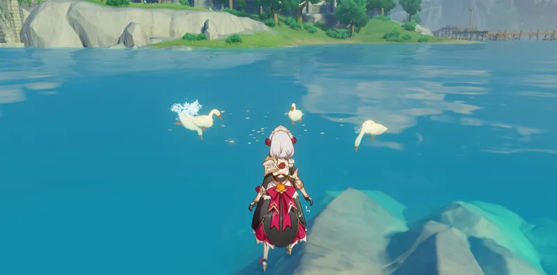Up to four players can team up together, with cross-platform drop-in, drop-out gameplay. Co-op is easy to use, and a fun way to fight bosses and do mini-dungeon experiences. Or maybe you just want to hang out, watch some ducks, and take some screenshots. Co-op is a fun addition, but everything in the game can be done and enjoyed solo.
