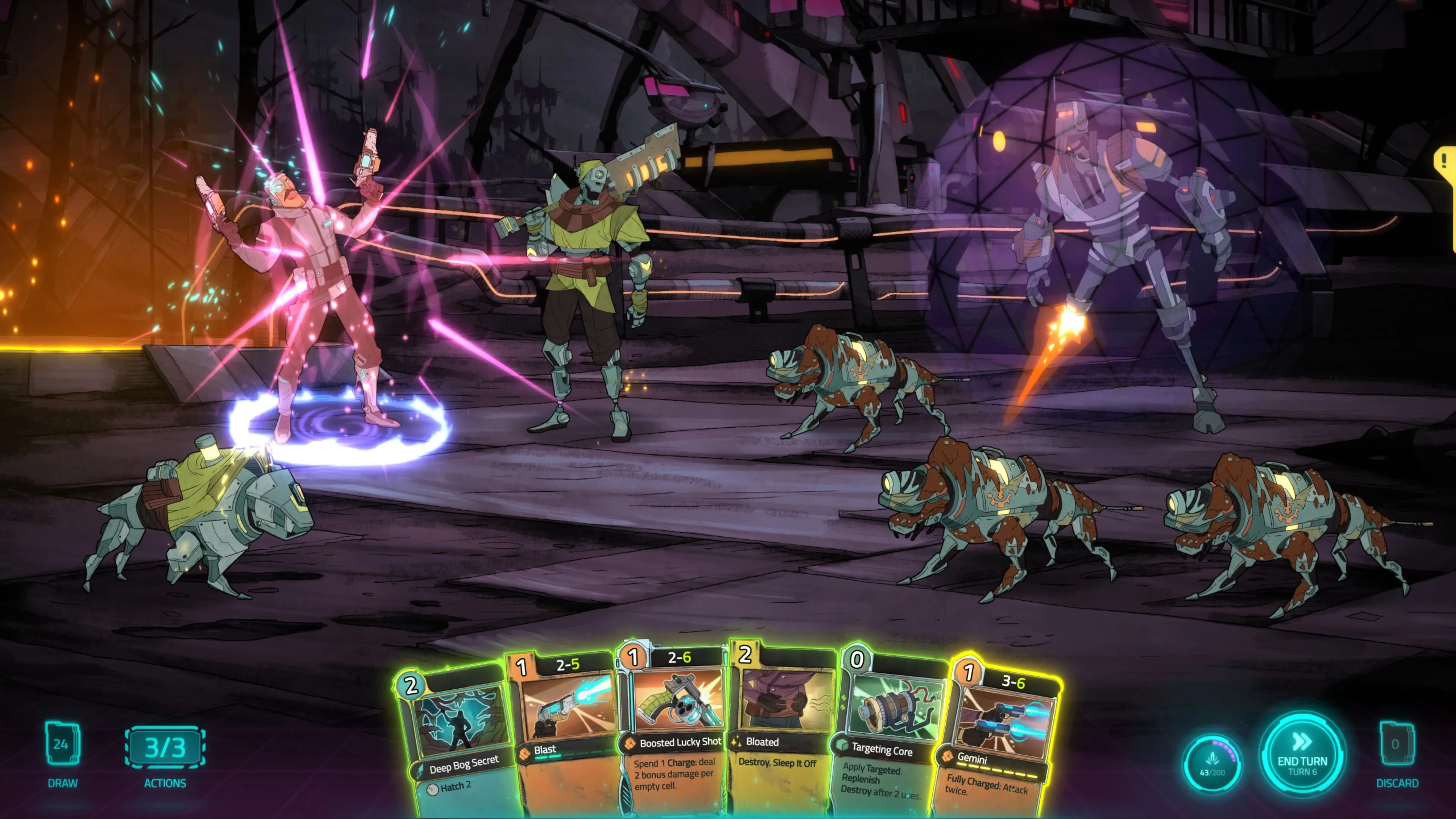 Negotiations, on the other hand, are my favorite part of the game. I love seeing my conversations represented through game mechanics rather than the typical dialog tree. Additionally, I appreciate being able to navigate conflicts without always resorting to violent tactics. These debates are triggered when trying to get information, pushing for a few more shills on a completed job, or to demoralize an opponent before a real fight. Your goal is to reduce the resolve of your opponent’s core argument. Side arguments have various effects on the discussion, giving benefits to yourself or hindering the opponent. These additional arguments stand separate from your core argument and must be defended as if they were allies in battle. Failing a negotiation doesn’t end the game, so negotiations present a complex, fun, and low-risk solution to some problems. Losing a negotiation may lead to a physical confrontation, but talking things through can avoid some confrontations or provide buffs during street fights, so it’s usually worth a shot. I found it a little overwhelming at first to learn a second set of card mechanics, but ultimately I found the flavor and execution of the negotiation system to be excellent.
