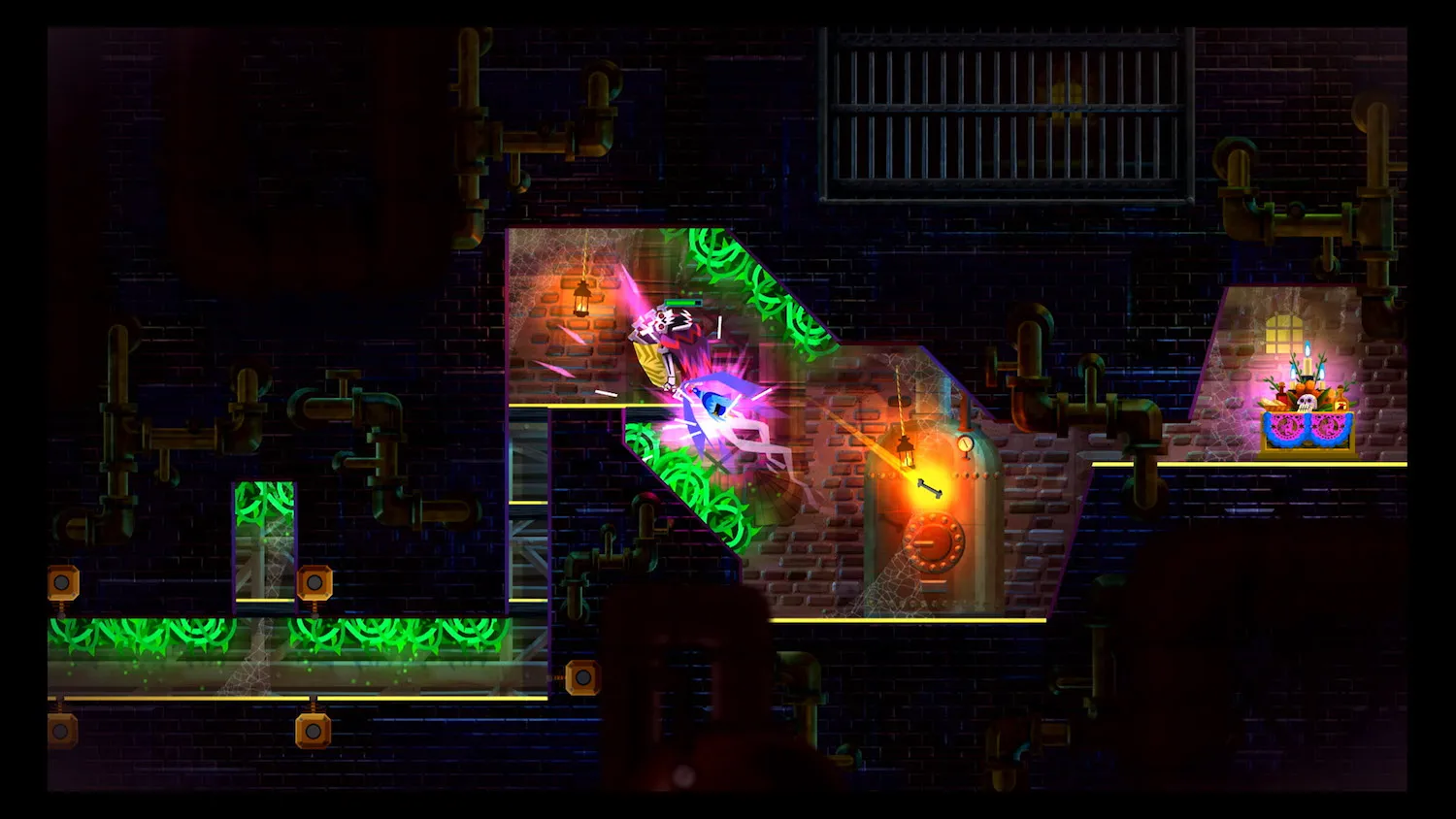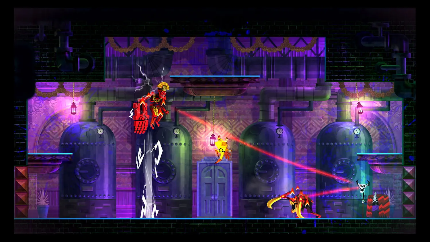 Along with dimension swapping and all of his combat and navigation abilities, Juan can also turn into a chicken to enter small tunnels. The chicken can do nearly everything Juan can, including fight. In the first game, the chicken felt like a significantly weaker version of Juan that was required for certain platforming sequences, but here the chicken form feels like an extension of Juan with its own additional distinct abilities like being to dash upward through the air multiple times and dash over spike pits with ease.