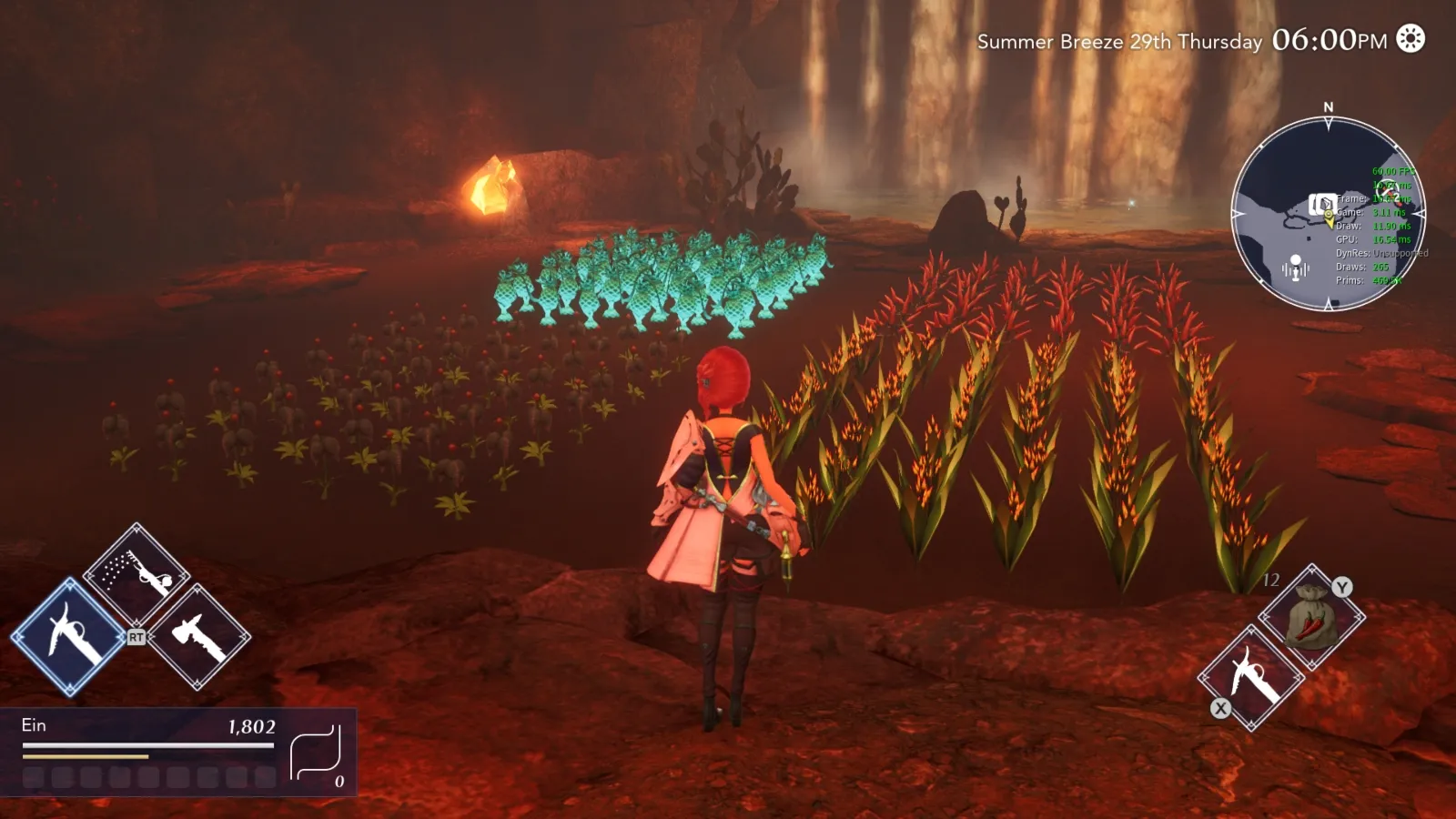 Like combat, farming only feels passable, but is crucial to success. Selling crops serves as one of the few ways to earn money. You also need a full pantry to whip up a variety of dishes. Eating keeps your belly full, which in turn fuels your stamina bar. This meter governs actions such as farming, sprinting, and even executing special attacks. Eating also replenishes health, often in large amounts depending on the dish. However, you can’t eat if you’re full, which becomes a maddening hindrance during tough battles. Since traditional health potions don’t exist, you’ll be making all of your recovery items. Doing so takes time which feeds into Harvestella’s biggest nuisance: the clock.