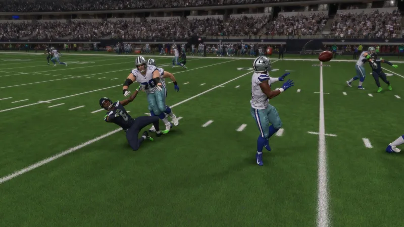 The much-ballyhooed Skill-Based Passing adds an interesting (and optional) wrinkle to throwing the football. Having a target area and aiming reticle takes a bit of getting used to, but the additional control over ball location does make a difference, especially for avoiding defenders while throwing over the middle of the field. It quickly became second nature, and I sorely missed the fine aiming controls when I went back to play a game in Madden 22. The passing meter, on the other hand, is a non-factor. Generally, my muscle memory for how long to hold a pass button lined up with perfect passes and turning the feature off or on didn’t make a noticeable impact on the field.