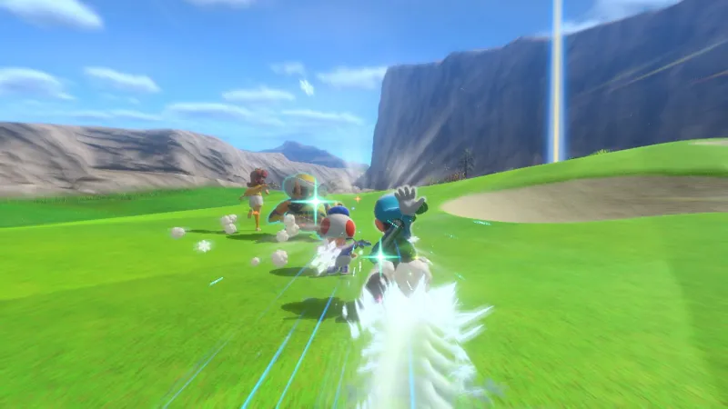 In Speed Golf, you tee off alongside up to three opponents, then take part in a foot race to where your ball lands before taking another swing. The goal remains to get the ball in the hole, but rather than taking your time to line up the shot, you have the clock to worry about; each stroke adds 30 seconds to your course time, and the player with the lowest time takes the podium. As you sprint to your ball, you need to consider the best route, your stamina meter, and on-course obstacles. However, the most fun part of the mode is when special shots and dashes start messing with the characters. While golfers are typically among the most respectful and chivalrous athletes, that all goes out the window in these modes; blasting somebody with your special dash is simply too much fun to ignore. However, Speed Golf’s biggest weakness is that this element isn’t taken far enough; too often the running parts of this mode feel uneventful, and the action often feels like filler between your strokes. Thankfully, for those who like the more chaotic elements, there’s Battle Golf.
