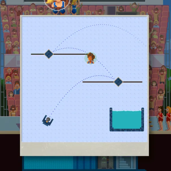 My main gripe has to do with the puzzle type involving a girl on a diving team. It presents pinball-like puzzles where you shoot a ball that ricochets off platforms and walls as you attempt to fling it into a pool of water. To shoot the ball, you use a few dials to change the angle of how it’s thrown, but the dials were frequently difficult to adjust due to imprecise controls. While this is annoying, it’s a minor issue since you have unlimited tries.