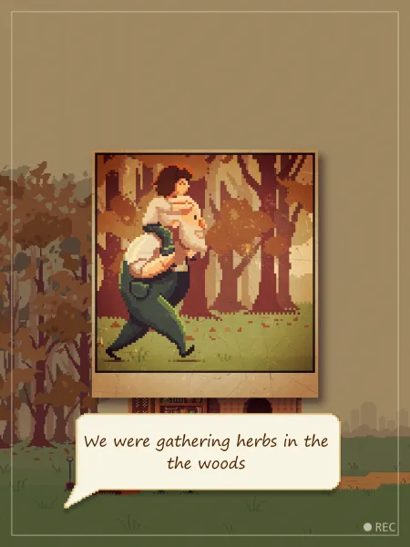 Between the puzzles, Photographs tells stories through short vignettes with voiceover, text, and pictures. Although it has welcoming warm colors, Photographs is cleverly deceiving. The pixelated environments draw you in, but bleakness and despair hide underneath; every story revolves around regret, and each tragic tale feels sincere. The narratives follow a predictable structure by using similar narrative devices to twist the events into chaos, but the experience is less about surprise and more about the fascinating characters and their eventual plights. I won’t spoil any specifics, but with multiple endings, I felt that I had some agency (albeit limited) in how the tales concluded.