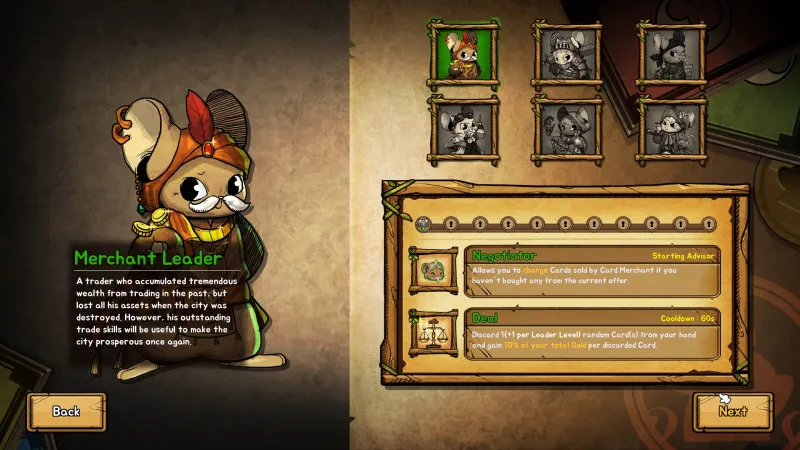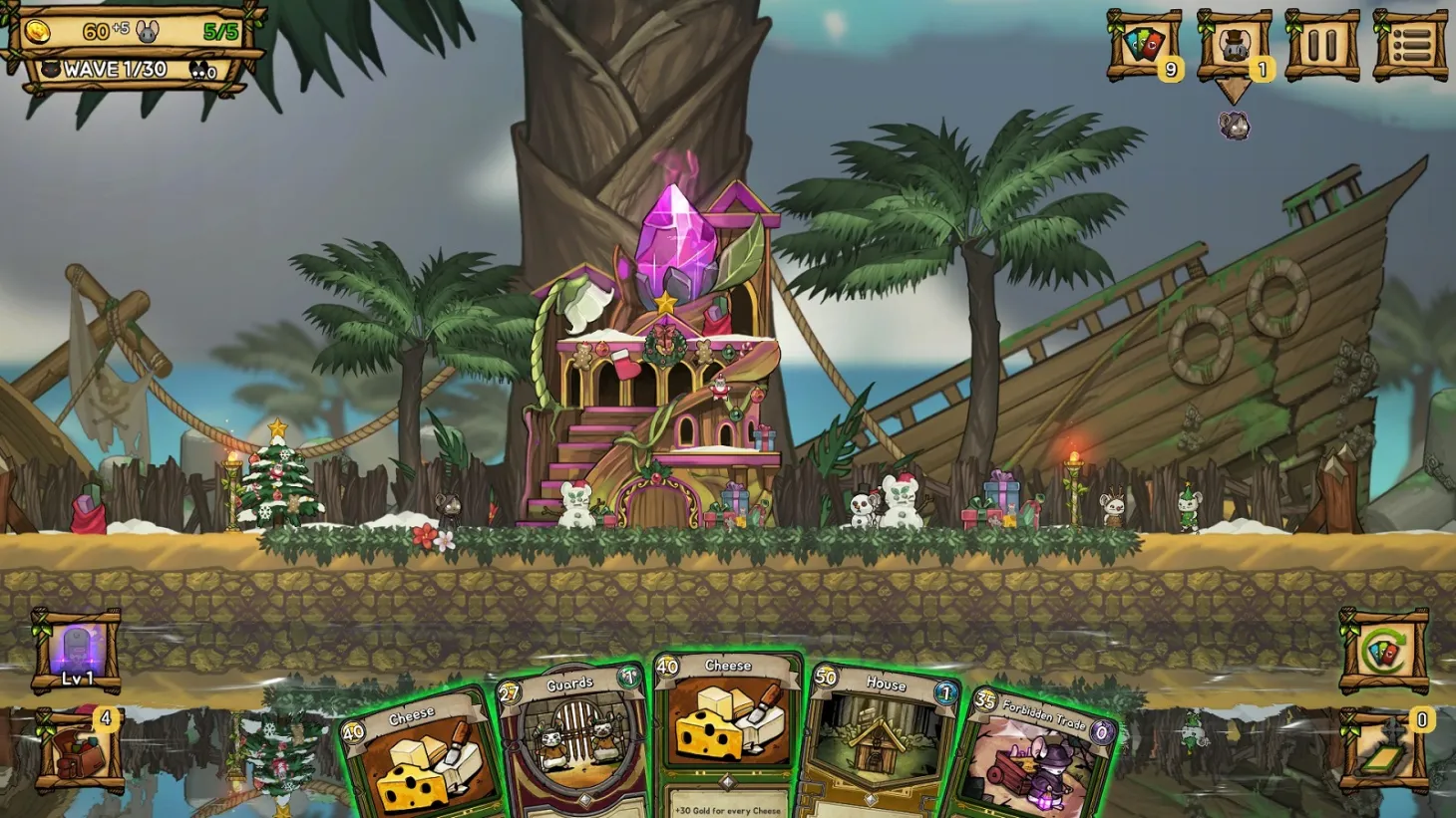 The goal is simple: You must survive 30 waves of onslaught as you build up a city. To that end, you select a main commander mouse that dictates what cards are available on each run. Each mouse has a variety of strategies to employ, and while you start with basic loadouts like the military-oriented general and the money-laden merchant, later unlockable characters like the scientist, shaman, and naval officer add many timing considerations and more advanced foibles to the game.