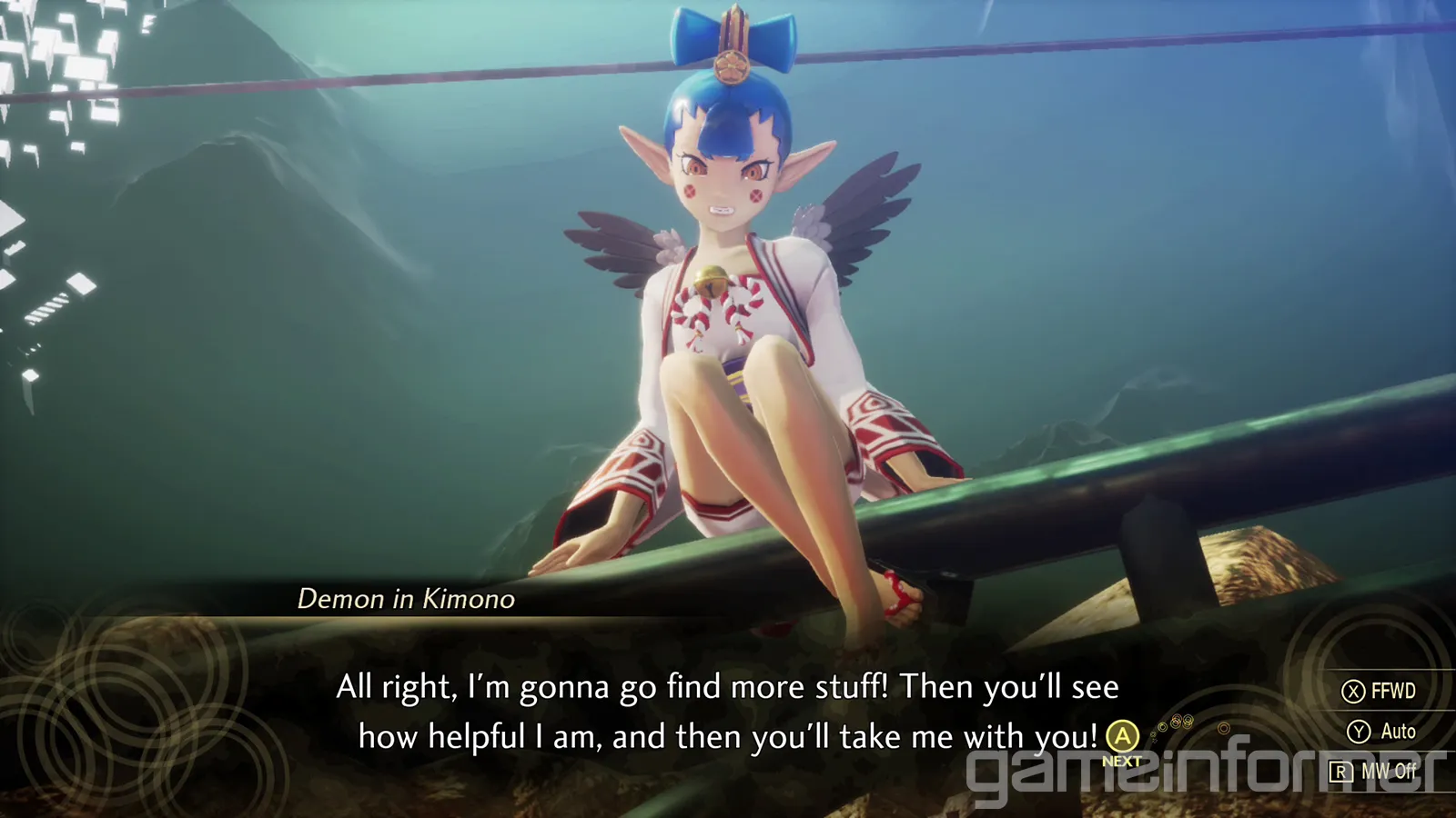 Another area that impressed me was the expanded exploration, with a newfound verticality to the world that has you platforming your way to discoveries. I was compelled to scour every inch of each area and found worthwhile rewards for doing so, such as statues that raise all your demons’ levels and special bosses/quests. In addition, hidden throughout the world in hard-to-reach places are creatures called Miman. Collecting these little fellows grants you some of the best items in the game for improving your party. I just wish the areas you explored were more visually impressive and easier to navigate. I often felt like I was searching for a needle in a haystack to find a well-hidden path. The game has a few short dungeons, but they’re hit-or-miss. I hated one that required you to use fans to blow your character to certain ledges as a missed ledge meant starting from the beginning, but I enjoyed a later dungeon that had you figuring out a path by stopping time and entering doors in the right order.
