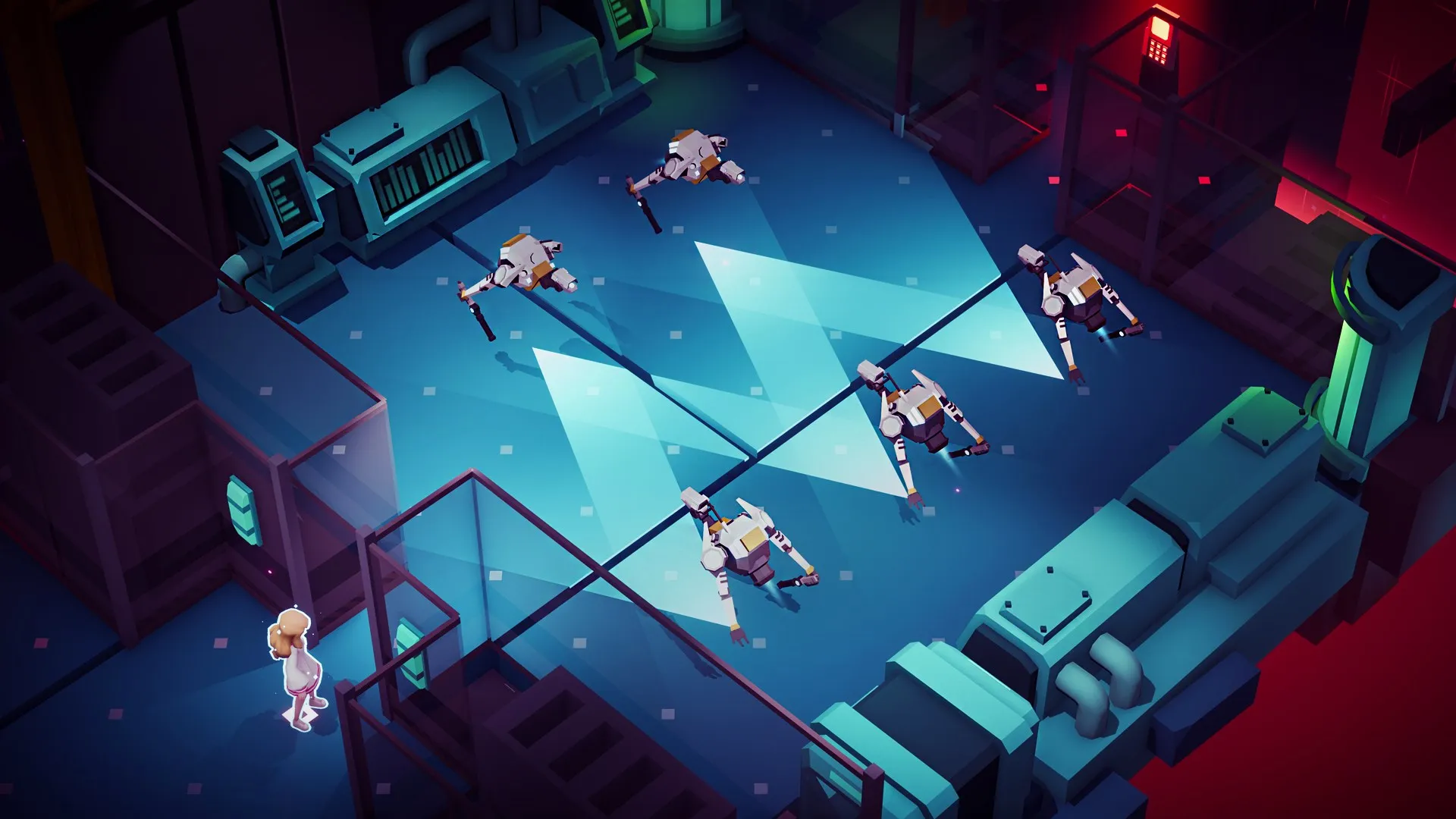 All of Timelie’s levels are miniature mazes that have you dodging security drones as you make your way toward digital keypads to unlock the exit. Navigating these mazes is relatively simple, and your goal is almost always obvious, so the challenge comes from your limited windows of opportunity to dodge patrolling sentries and reach your target. Fortunately, your nameless heroine can see into the future. Practically speaking, this means that you can pause and rewind the action by scrubbing through a timeline at the bottom of the screen, which lets you fine-tune your movements through each tangle of hallways. Weaving through guard's eye lines and narrowly evading their grasp is always satisfying. Once you’ve perfectly orchestrated your escape, you can watch a real-time video of your plan in action, which is neat in concept. In execution, I was usually happy to skip these playbacks thanks to the main character’s slow movement.