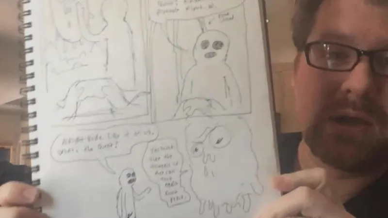 Trover Saves the Universe is a weird game with a surprising amount of lore, storytelling, and jokes. Playing the game often prompts the reaction, "Who the hell came up with all this?" The answer is Rick and Morty co-creator Justin Roiland, and we decided to ask him that very question. We spoke with Roiland about the game's surprisingly dense lore (is Bath Tub Guy a human?), how the team came up with the best jokes (Vanilla Village is a standout), discuss the ending, and Roiland also shows off some of his early sketches for the game. You can watch the video above for the full interview, but be wary – it does contain spoilers.