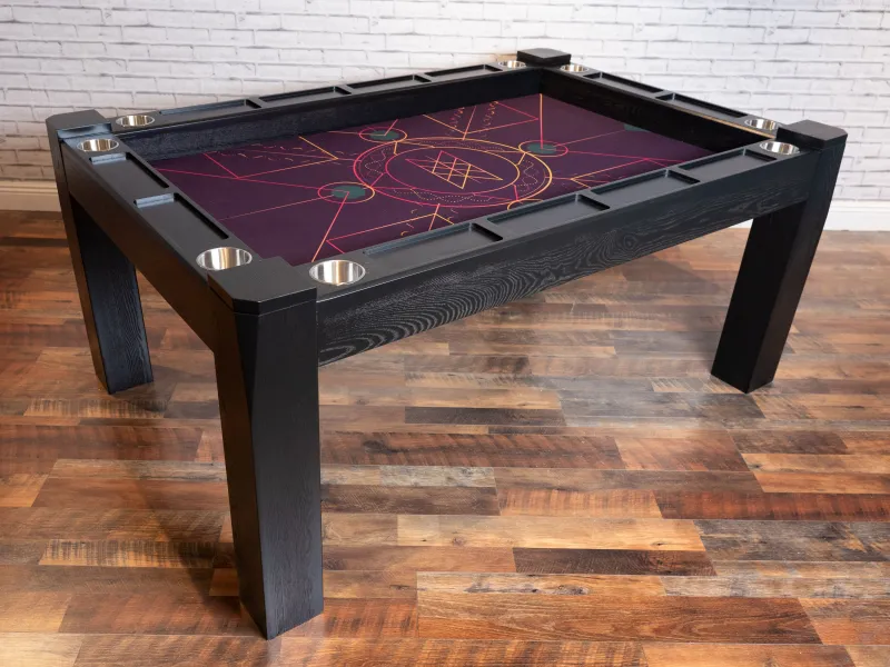 The original Origins table was most notable for its customizability, including a choice of wood color, playmats, cupholders, and optional accessories like USB chargers and dice-rolling towers. But its chief success lies in its recessed design, which offered a 4-inch recessed play area, which a dining top could cover, keeping in-process games in stasis while the family enjoys dinner, and allowing the game to pick back up when the group is ready to get back to the action.