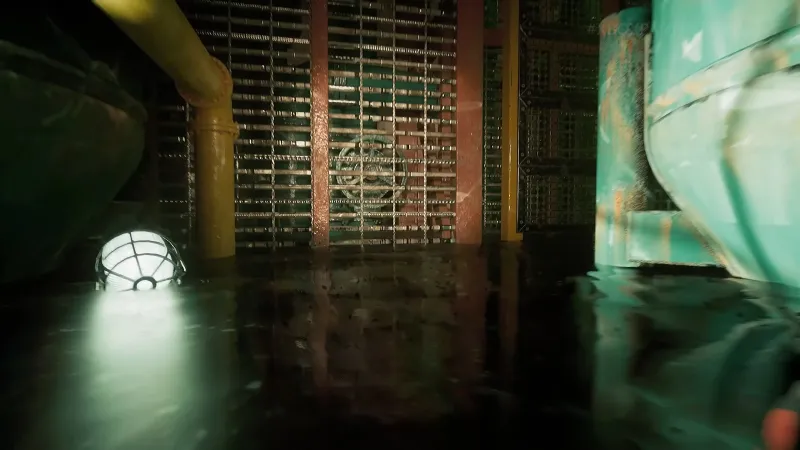 The new project has distinct horror vibes as it drops players into the shoes of a character navigating a ruined oil rig. A strange, alien-like tentacled form reaches up from beneath the roiling ocean waters – seemingly the source of the oil rig’s trouble. As the protagonist navigates the catwalks and beams of the rig, we hear distant and troubling screams. After traversing several tunnels, the first-person lead drops through a hatch into the very water that seems to be the source of the strange tendrils.